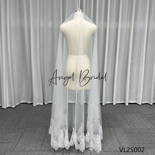 Custom Made Long Bride Veil Comb One Layer 3D Lace Appliques Ivory Tulle Bridal Veils for Wedding